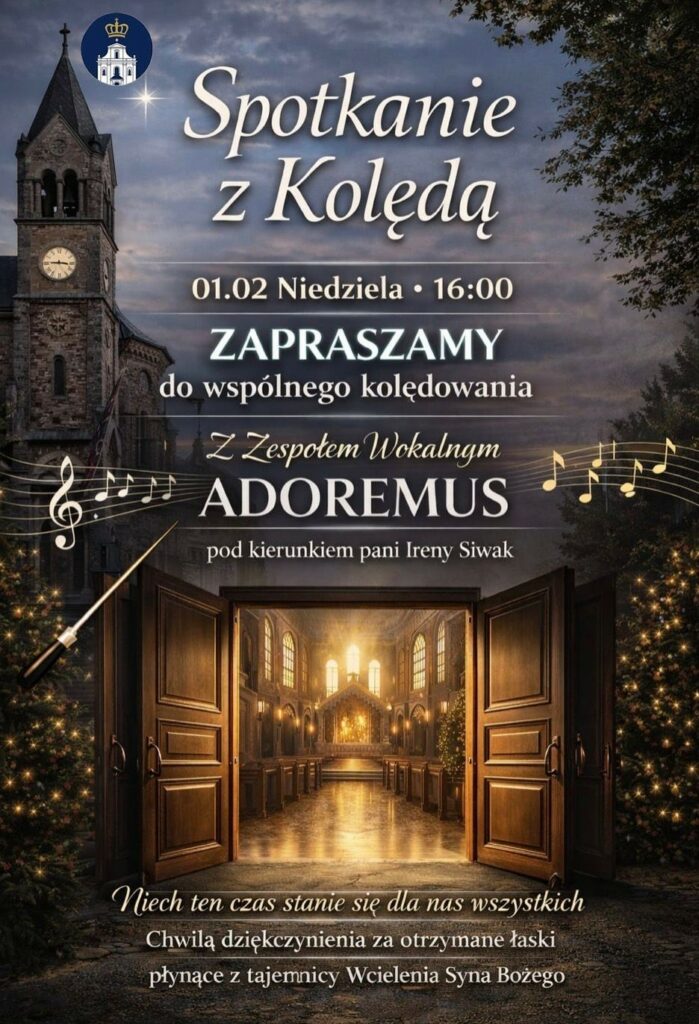 W niedzielę 1 lutego 2026 r. o godz. 16:00 zapraszamy serdecznie do kościoła na Spotkanie z kolędą. Do wspólnego śpiewu poprowadzi nas zespół wokalny Adoremus pod kierunkiem pani Ireny Siwak.