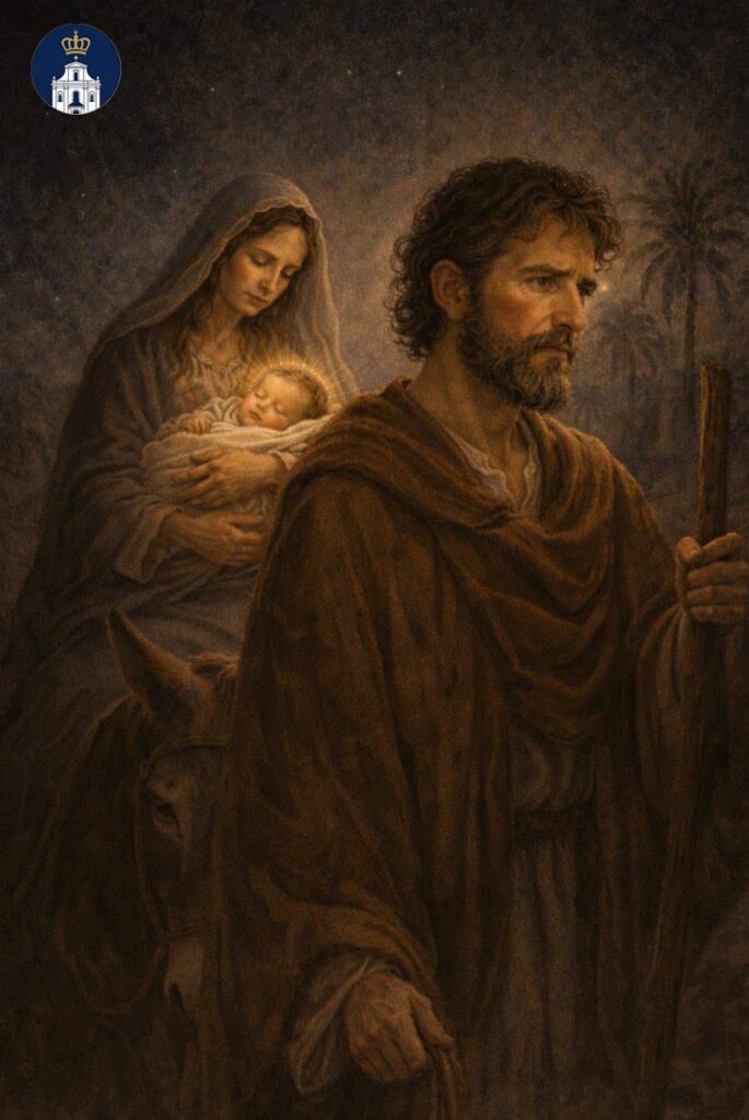 Z Ewangelii według św. Mateusza: On wstał, wziął w nocy Dziecię i Jego Matkę i udał się do Egiptu (Mt 2,14).